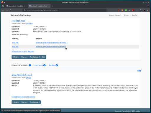 arrow-up11arrow-down1imageRelease 1.3.0 of Vulnerability Lookup with many improvementsplus-squarelemmy.mlCedric@lemmy.ml · 1 year agomessage-square0linkfedilink