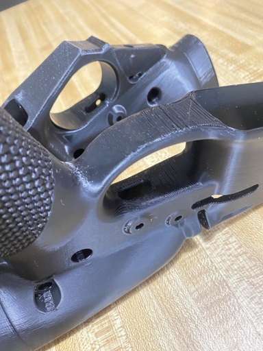 So i had did the normal changeable grip hoffman lower but crack sooner then i’d like, seen what people said and it was to switch to the one with built in grip with that being the reason mine cracked where it did. So for 1 i couldn’t figure out how to do the support enforcers so ended up doing my own, not happy with them especially with one breaking during print, if anyone knows how to and can help me with that would mean a lot. and 2 does this print look good to go, i feel like looks great everywhere besides the 2 spots show like under the trigger hole, it also came out a bit stringy which normally don’t happen so kinda looks messy with me not getting it all out yet but either way let me know any thoughts or help y’all got, thank you!