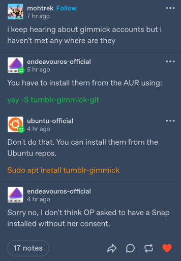 yay -S tumblr-gimmick-gitDon’t do that. You can install them from the Ubuntu repos.
