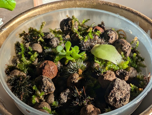Here are the tiny leaf pullings of my Pinguicula agnata and P. moranensis.