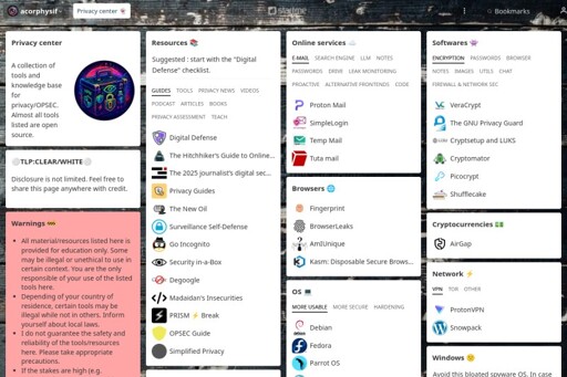 arrow-up1127arrow-down1external-linkNice little collection of privacy toolsstart.mehereforawhile@lemmy.ml to Privacy@lemmy.ml · 21 days agomessage-square10linkfedilinkcross-posted to: privacy@programming.dev