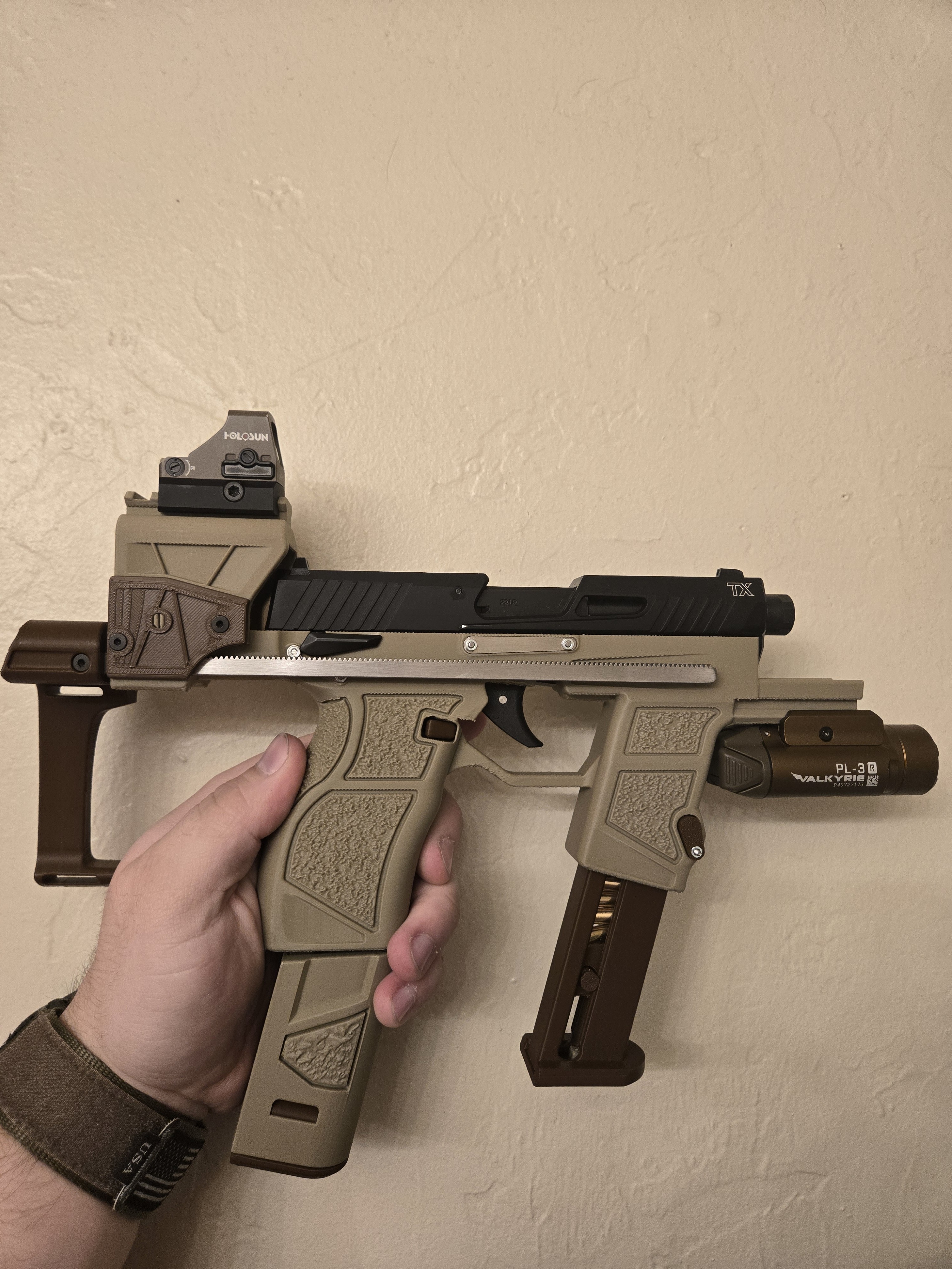 TX22 Pillager Chassis is releasing soon. This will come wil multiple different textures and add-ons. Spring-assist brace deploy will come standard on this model but it works without it. All i have left is to tidy up some files and make a how to PDF. My original post on r/3D2A got my account permanently banned. Fuck reddit.