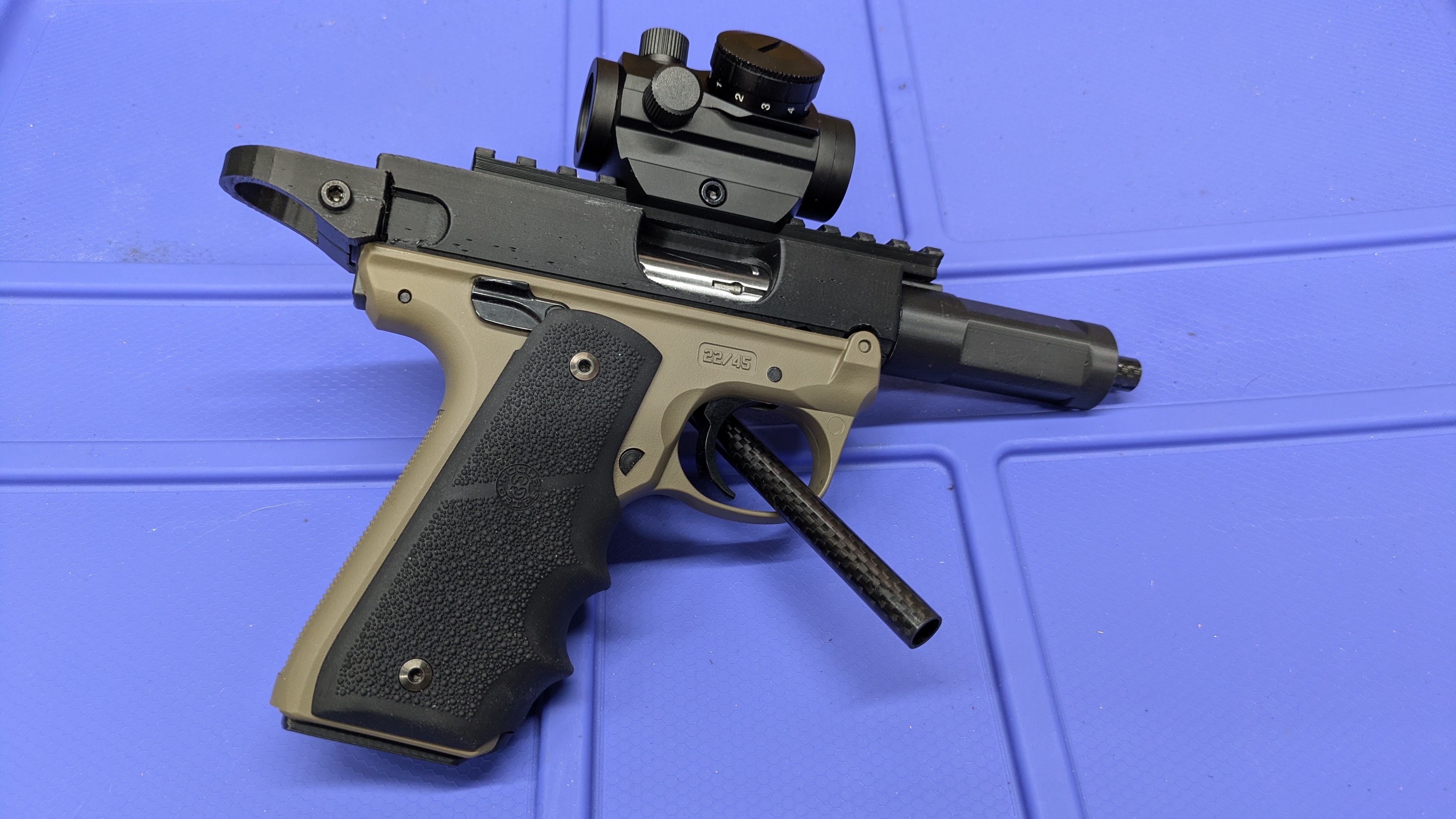 The frame at the moment is stock Ruger MKIV 22/45. I’ll be going over the model in Kilo’s version as it’s 22/45 style, but for MKIII and older. I plan to convert it to a MKIV.