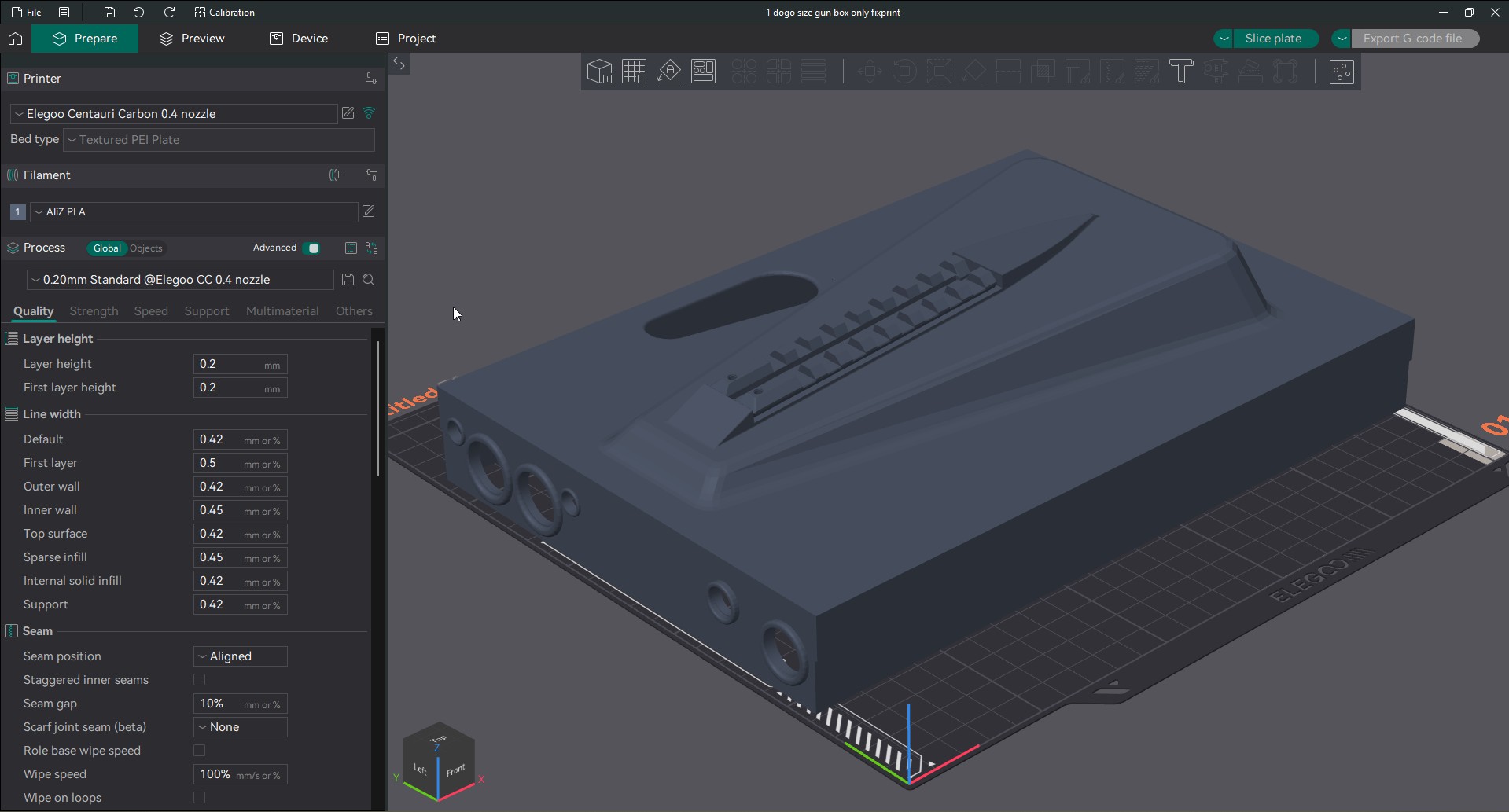 But I still want to finish the project I’ve started …so maybe I will make two UGVs; one Dogo and one Tero…:D Some weeks ago I’ve printed the top part of the DOGO (the gun holder box), I just curious to see the size of it and interestingly it is perfectly fit to my Elegoo Centauri Carbon print bed… I want to use the printed part to design the gun holder /clamp and the trigger mechanism using my G26 toy gun, but cant finish it because I have to go to other city for my job…so now it’s postponed.