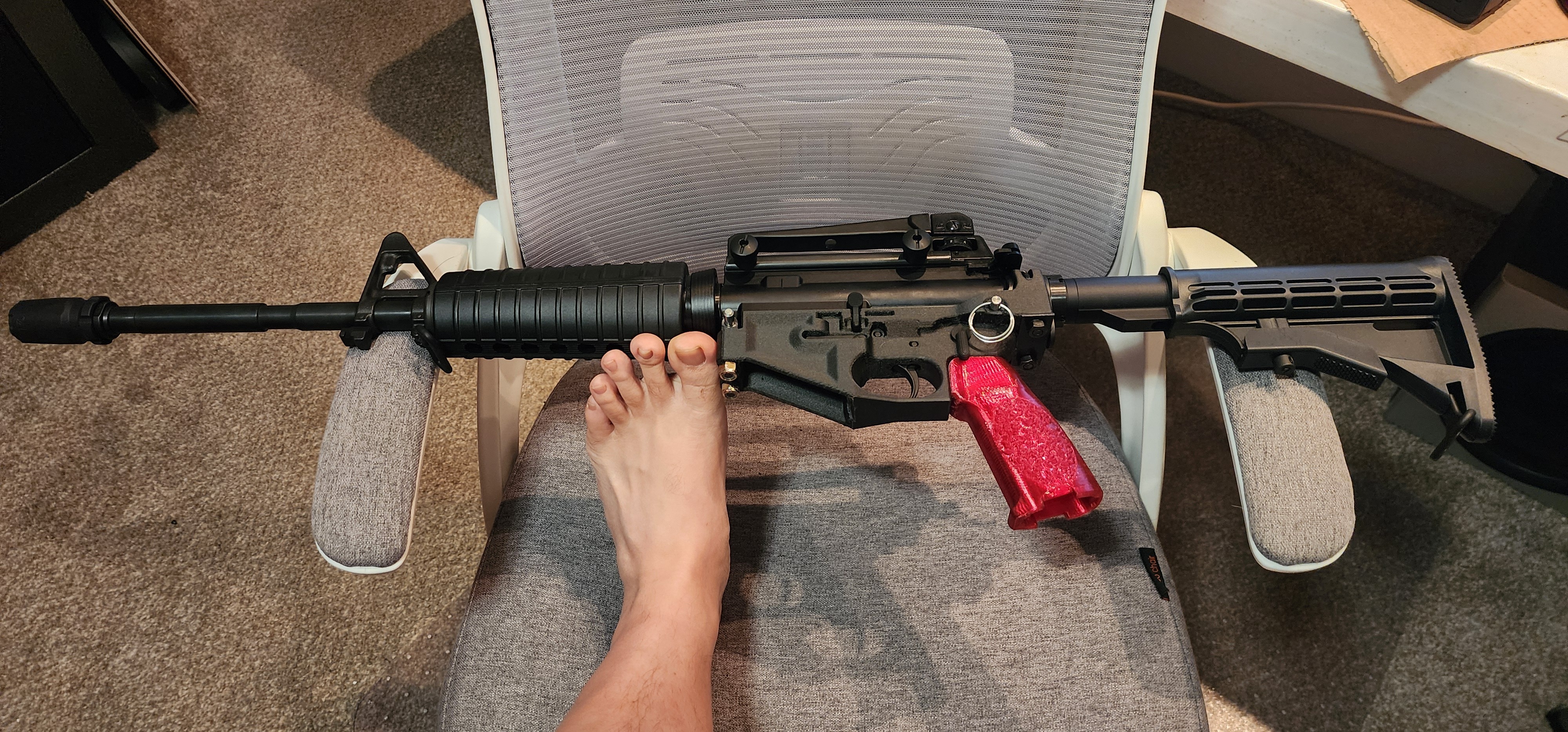 UBAR3 in Polymaker PA12-CF. Grip is Moe-esque floral in Sunlu PETG clear red. I re-used everything from my UBAR2 build. PSA Classic Freedom rifle kit.