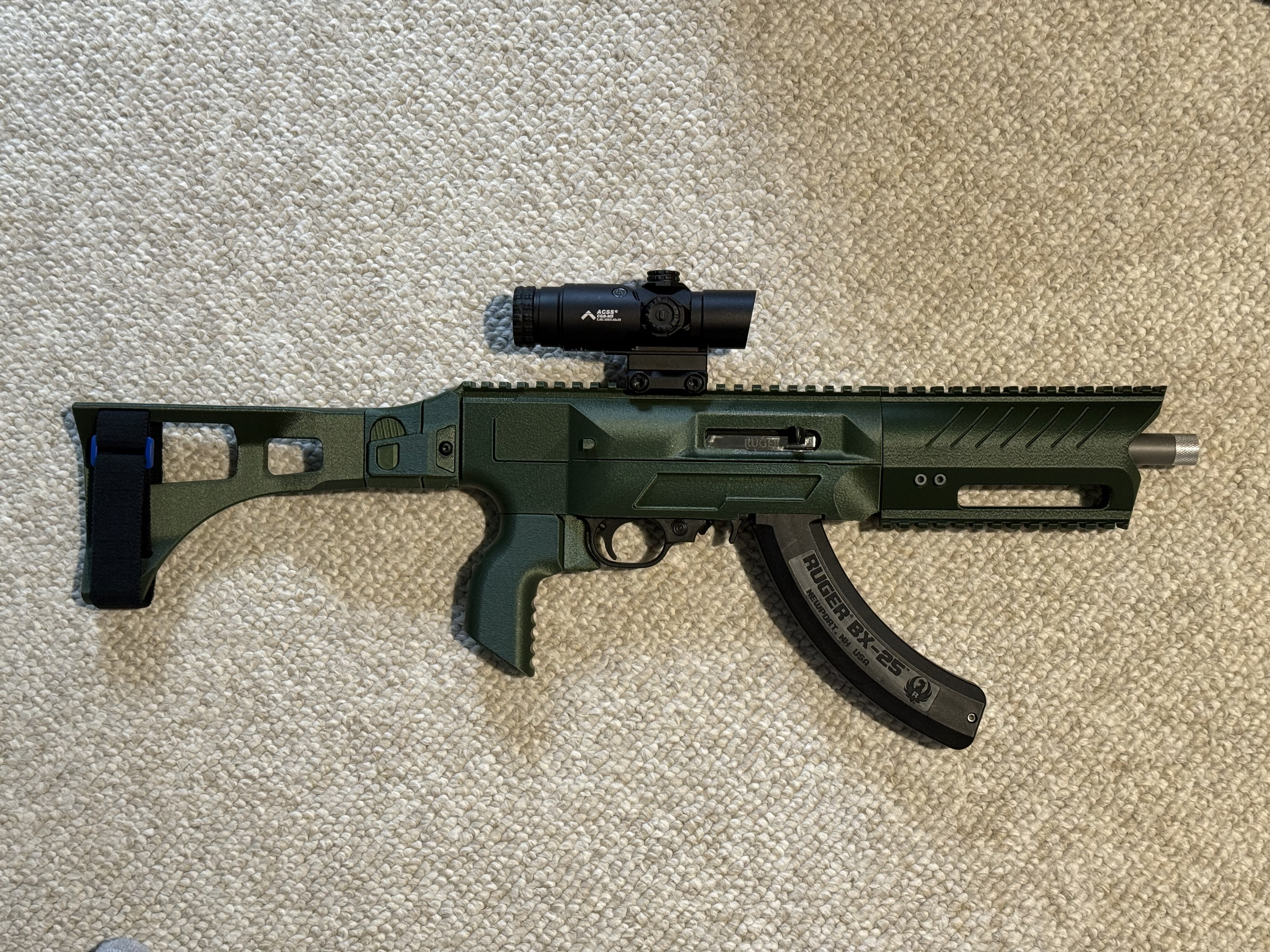 Here is the Remix 3 on an 8” BA barrel. I went with a different brace, which was the longest I could fit on an A1 Mini…and I had to trim the pic rail on the lower to get it to fit. But it provides an extra inch length over the better looking Sauerkraut (photo also included).