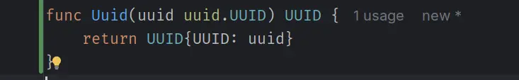 interface you have set up. It’s a common pattern in go to create a thin wrapper around an imported type so you can implement all the methods required for some interface you defined. It does make naming those thin wrappers hard because what are you supposed to name the struct that just contains a uuid?Yep, that person would be me and that’s exactly what I was doing, just found it funny that there was so many uuids in the piece of code.