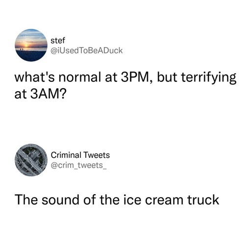 minus-squarejupyter_rain@discuss.tchncs.delinkfedilinkarrow-up1·6 months agoThe sound of children playing in the woods.