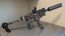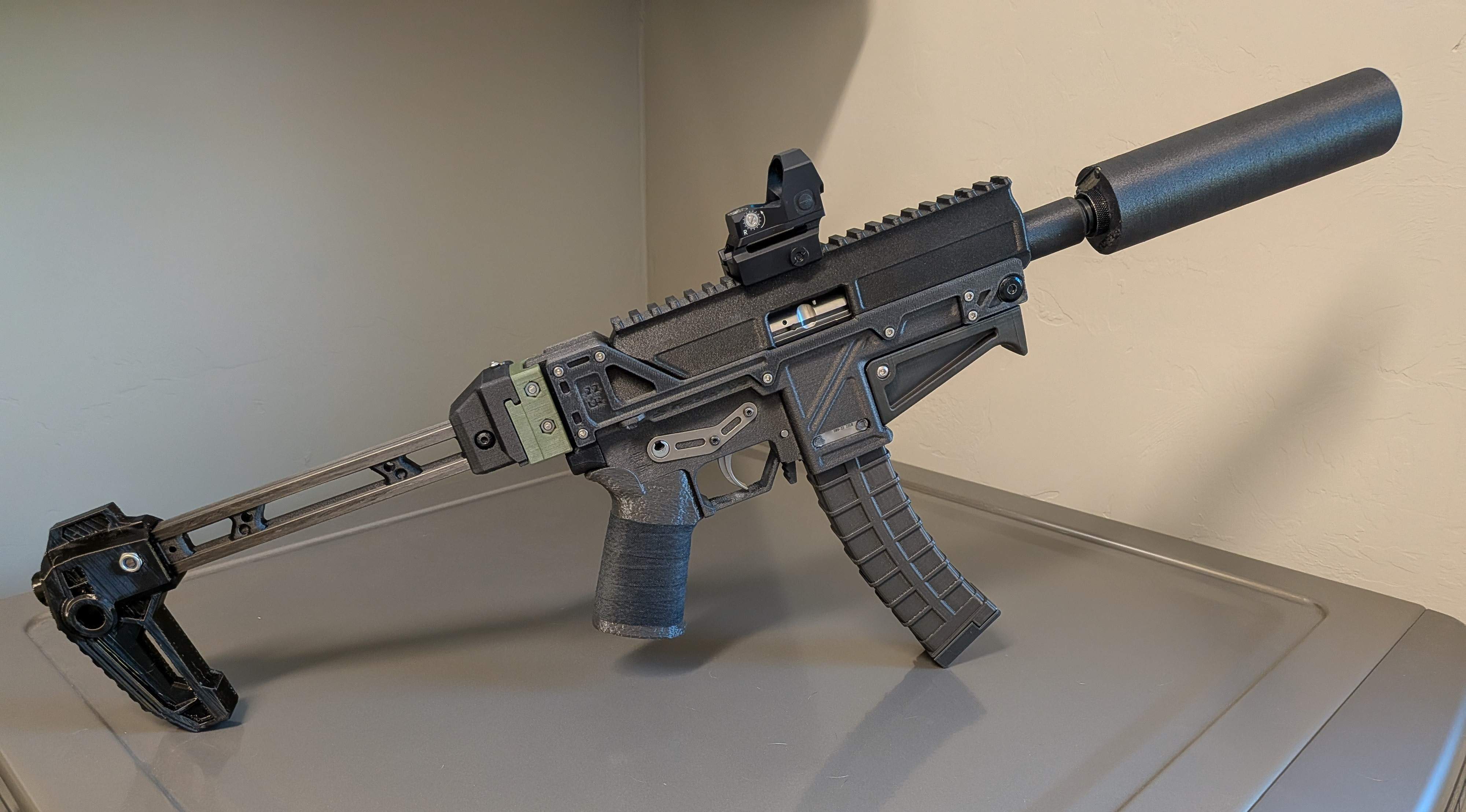 Build details: DB9-22 (Phoenix Design Works SS receiver) in Siraya PPA-CF, Carbon Folder stock, MM Soaked Noodle grip, mag and grips in PCTG. FTN.5 Rimfire Flowthrough in Siraya PPA-CF (annealed). I didn't appreciate how big the FTN.5 was until I printed it, but I really like the looks on this build (makes it look much more "serious" than just a 22LR plinker).