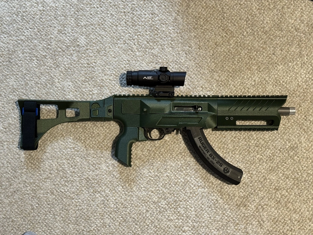• It was a surprisingly easy build. The biggest challenge for me is always arranging things on an A1 mini’s build plate. The optic cost more than the build, but I really like the PA GLx2 optics. Combined, it cost about the amount of a Ruger Charger for just the gun itself though.