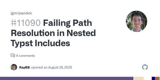 ray@lemmy.ml to Open Source@lemmy.mlEnglish · 1 month agoCreator of pandoc merged a fix to my bug report in less than 24 hours!plus-squaregithub.comexternal-linkmessage-square1linkfedilinkarrow-up10arrow-down10