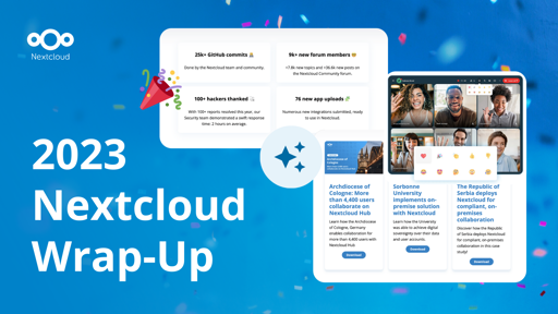 testman@lemmy.mlM to nextcloud@lemmy.ml · 2 years agoNextcloud 2023 Wrap-Upplus-squarenextcloud.comexternal-linkmessage-square0linkfedilinkarrow-up11arrow-down10