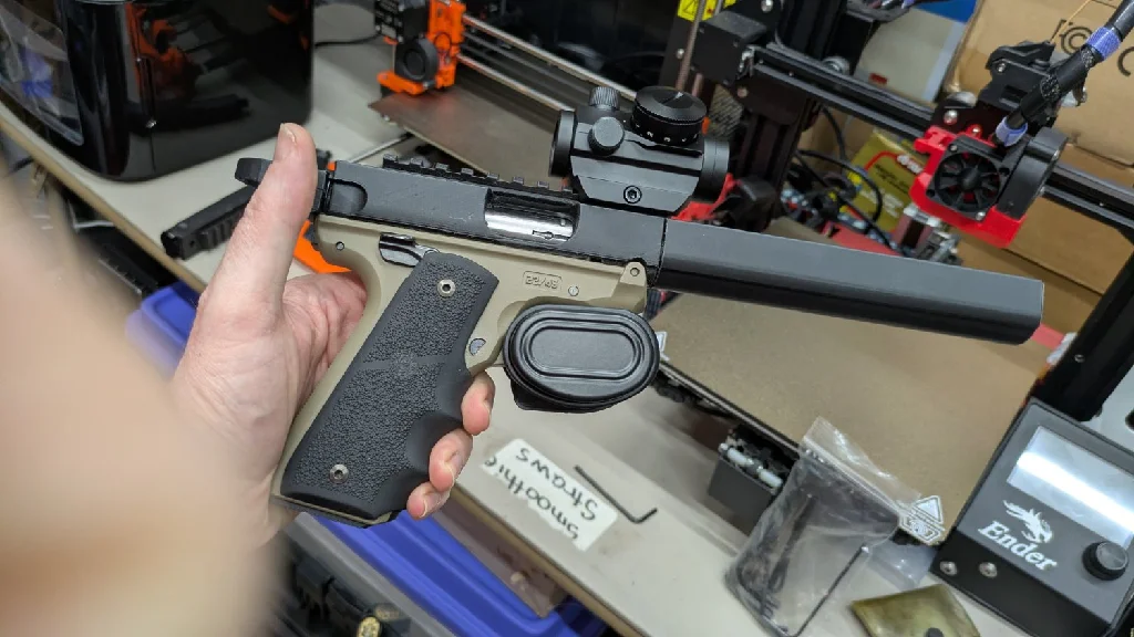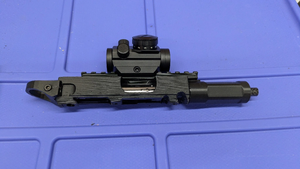 After scouring the sea for Ruger MK models, I've blended a few together. NotaGuntuber had a MKIV step that I flat-topped, added the barrel plug from DB's MKCarbon jig and the MarkR by Pixel_Smoke/Insertmeow barrel shroud. Just got the barrel put together today. Function test hopefully this week if it's not too frozen outside. Once I get this fine-tuned, I'll drop the step, SolidWorks and STLs on the sea.